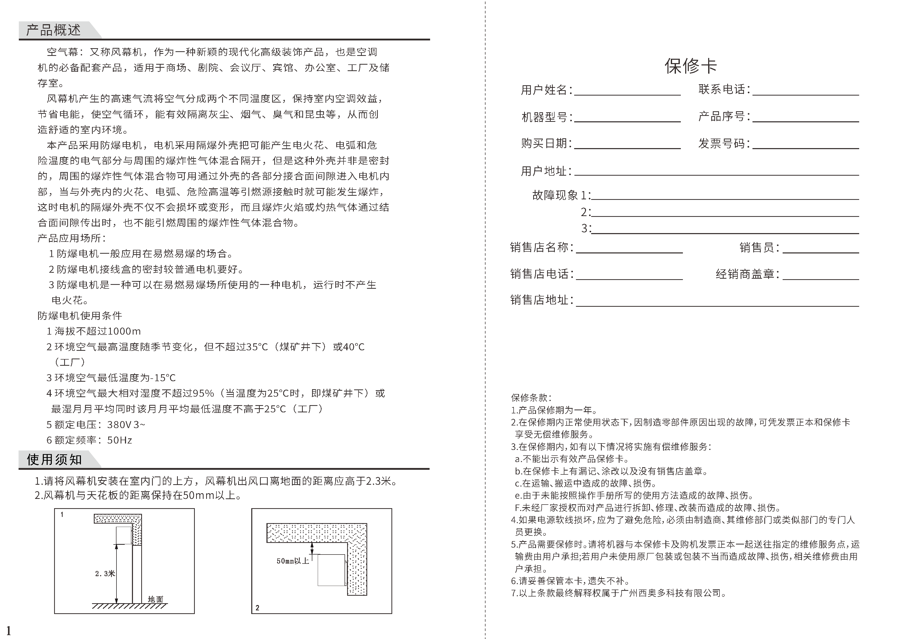 防爆风幕机FB-15A说明书