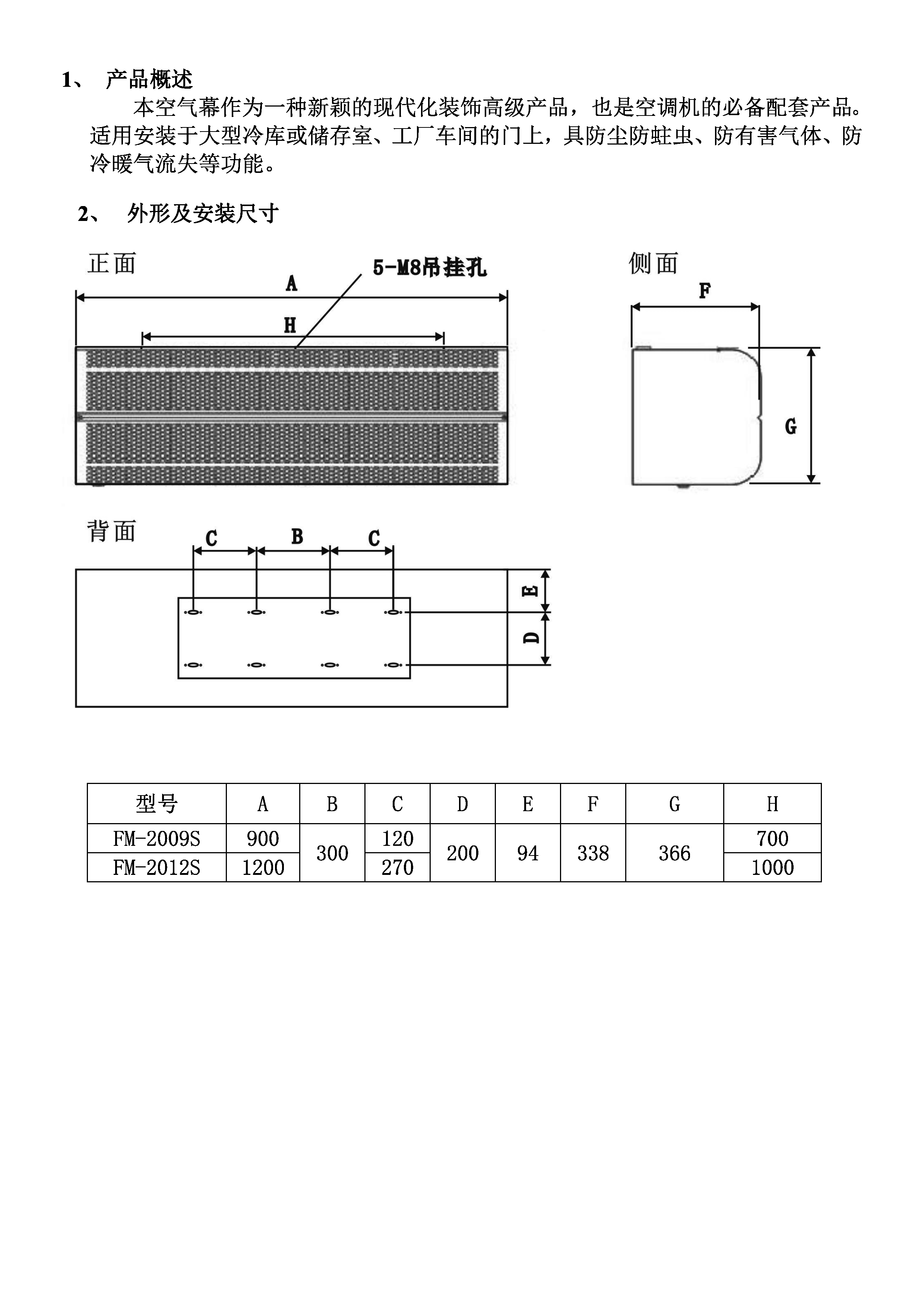 FM-20S工业型超大风量风幕机说明书