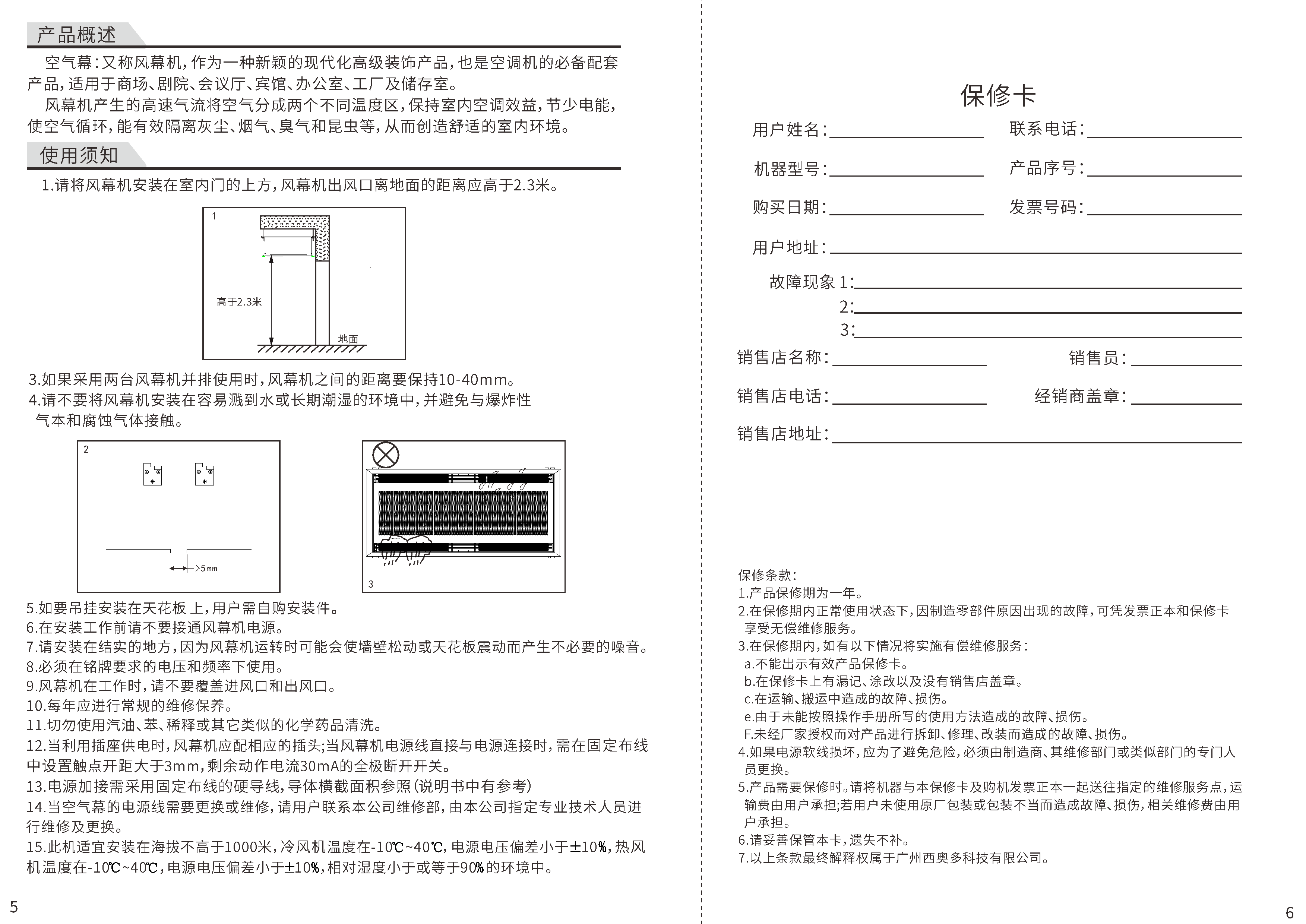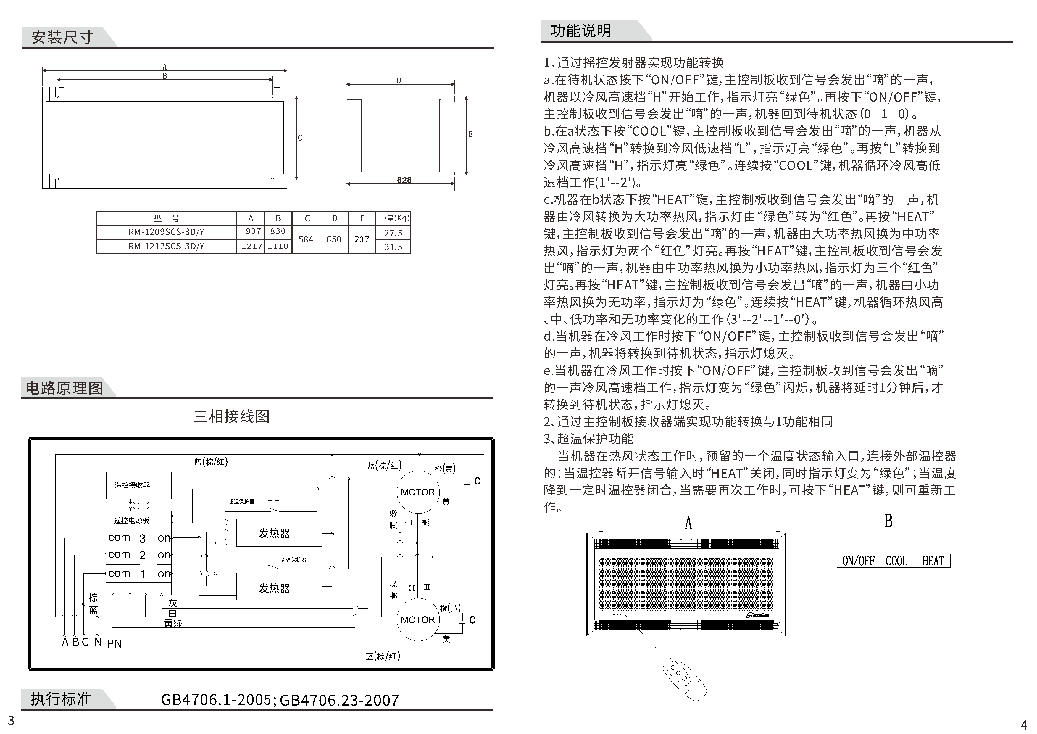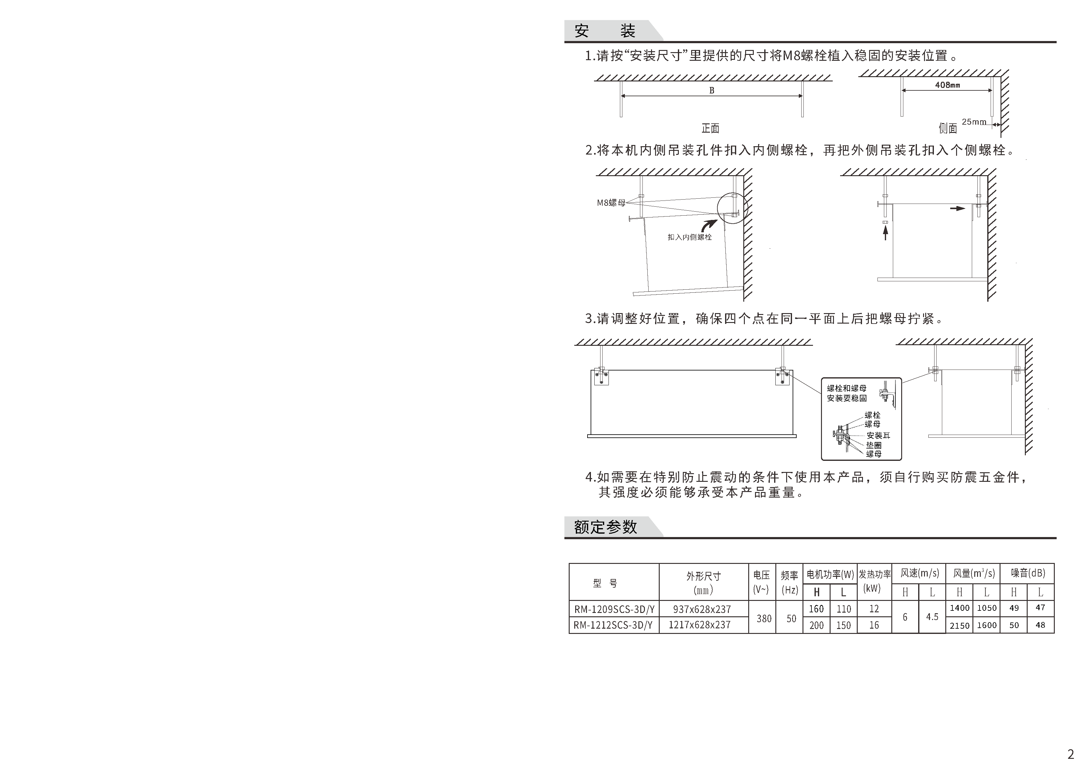 RM-12SCS-3DY双导风天花式热风幕机说明书