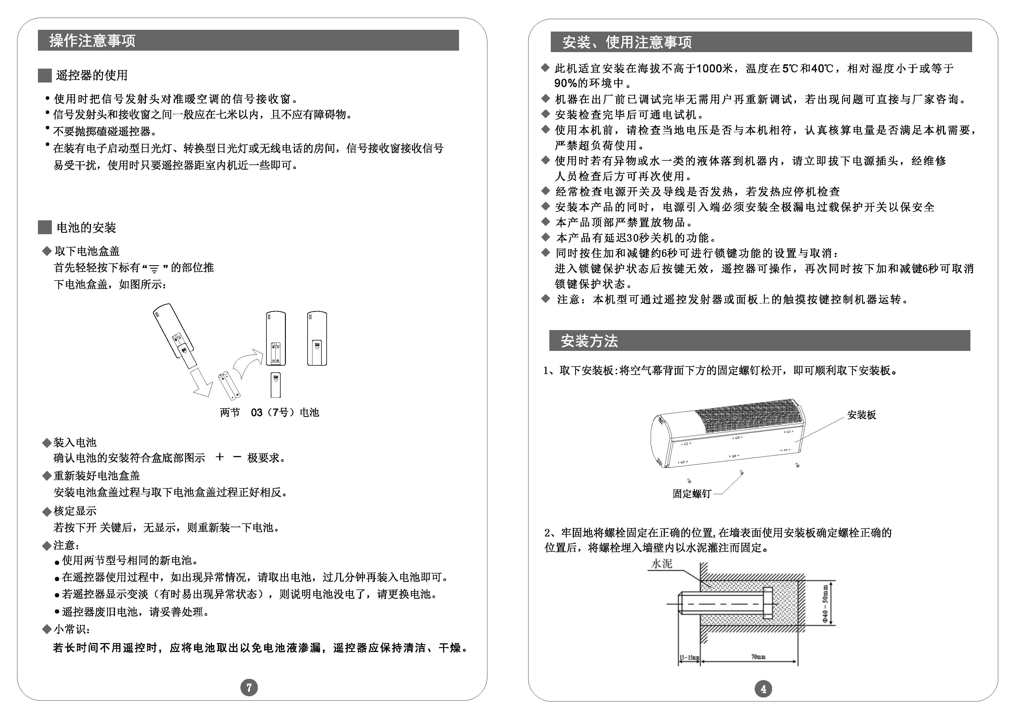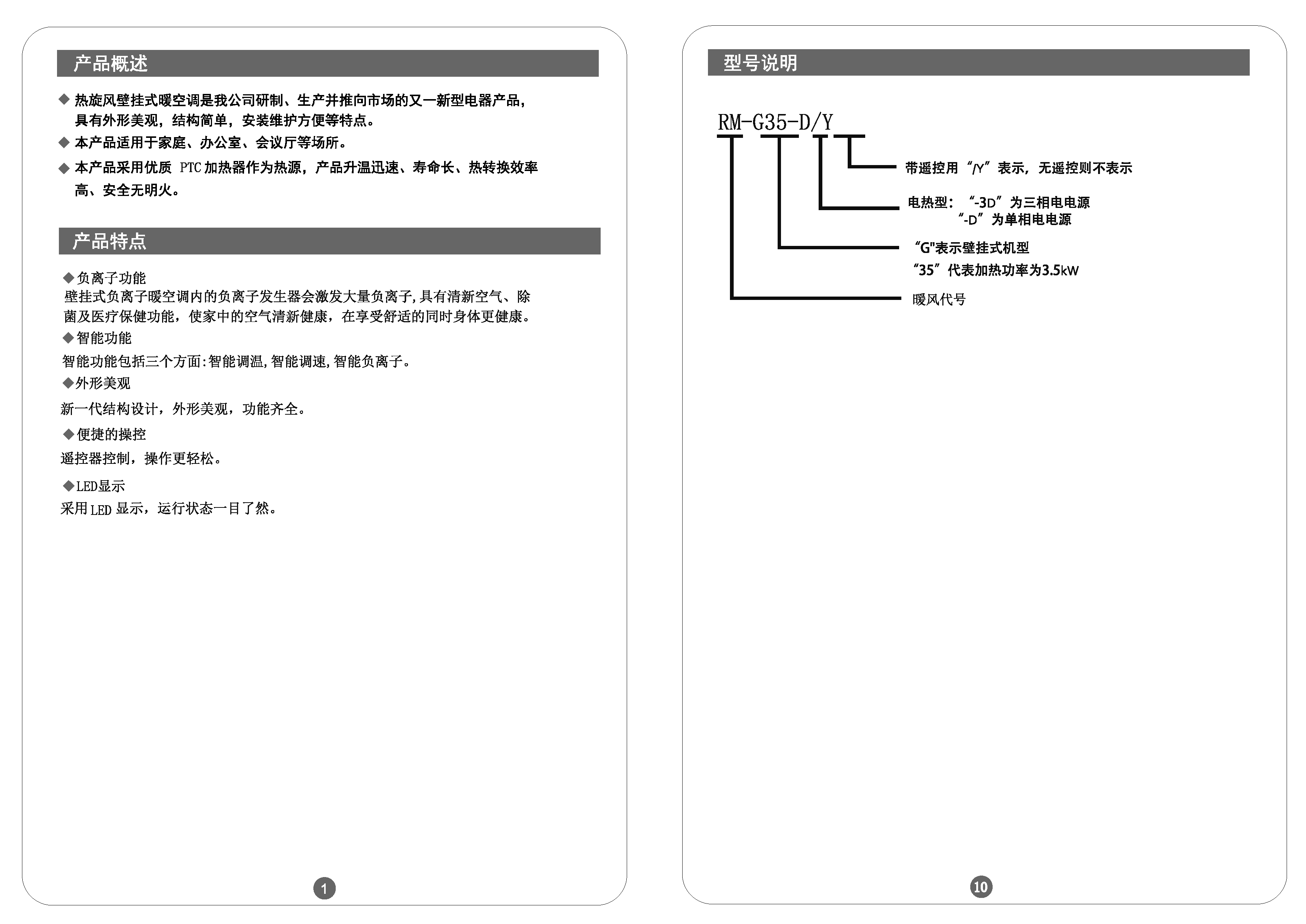 壁挂式暖空调(RM-G35-DY)说明书